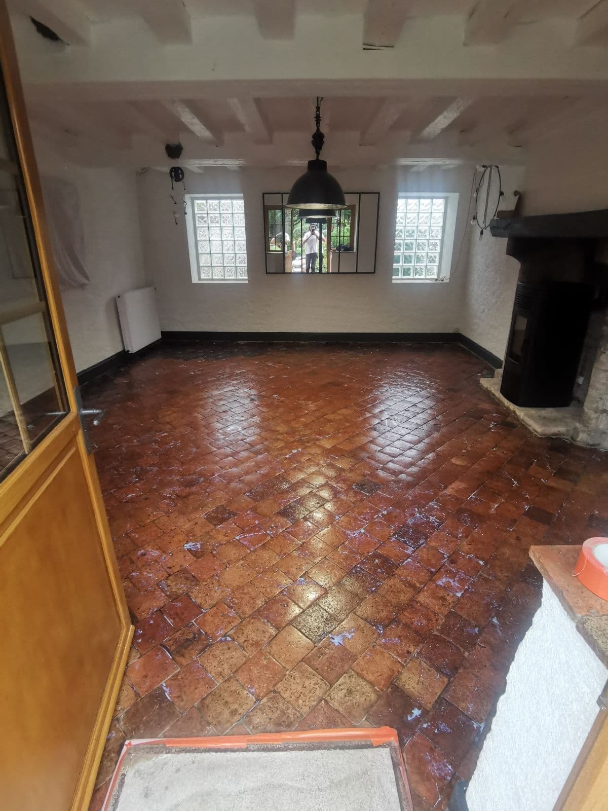 Finitions intérieures : pose de carrelage et détails soignés pour un résultat esthétique.